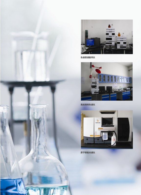 研發(fā)及質(zhì)檢中心配備了300多平方米的實(shí)驗(yàn)室,100多萬(wàn)元的先進(jìn)儀器和設(shè)備如:******液相色譜儀、氣相色譜儀、薄層掃描儀、TU1901紫外分光光度計(jì)、微量水分測(cè)定儀、旋光儀、薄膜旋轉(zhuǎn)蒸發(fā)器、超純水器等。